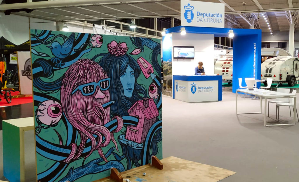 El arte urbano de Carballo estuvo de gira! El fin de semana del 15 al 17 de febrero estuvimos promocionando nuestro museo al aire libre en MIMOC, la II Muestra Internacional del Mundo del Ocio que tuvo lugar en Expocoruña. En este caso, llevamos información y material sobre el proyecto de arte urbano Derrubando muros con pintura y sobre el Rexenera Fest gracias a la Diputación de A Coruña que nos dejó espacio en su stand. Allí pudimos dar a conocer nuestro proyecto, nuestros murales y todas las actividades que se pueden hacer en torno a ellos.