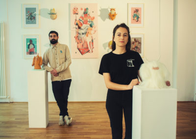They form the perfect synergy, as they combine illustration and painting with he creation of their recognizable art toys, unique pieces designed, drawn, cut out, sewn and sent by themselves.