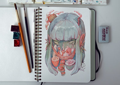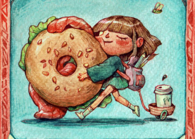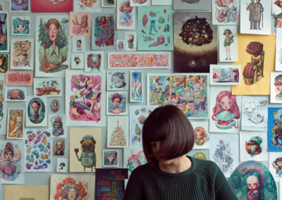She herself states that illustration and watercolors are the main objects of her art, but she also goes out of those fields to play with collage, photography, sculpture and mixed media works of art. The variety of projects she works on range from advertising, to children’s print books, to games, conceptual art, online illustration… and, of course, muralism.