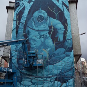 In this wall, the “diver”, which is how people call this wall, showed up again. This is the new version of that diver who had emerged in 2014 in a next door house already demolished.