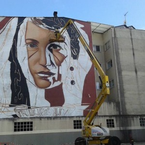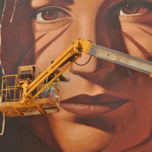 After 10 days of work, Jorit left us this mighty work ; as it is often the case with his paintings, Jorit represents here a greatly detailed and hyperrealistic portrait, featuring in this case the face of a young woman of Galician descent. This portrait’s goal is to reflect on the human origins: we all come from the same tribe. Throughout his career, Jorit has represented different famous and anonymous people and the main idea behind his work is the belief that we all share the same powerful feature: the face.