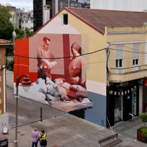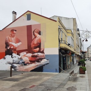 The mural that Udatxo gave us ads a present in the 2022 edition of the Rexenera Fest is located in the nerve center of Carballo, at the beginning of the pedestrian Coruña street and next to the main town square where the town hall, food market and the main playground are located.