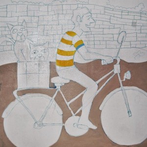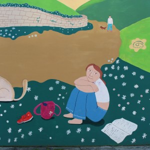 De camiño vou representa unha escena cotiá onde a ecoloxía, os animais, a natureza e a paisaxe predominan en todo o mural; sendo o home ou as persoas que aparecen na obra, unha pequeniña parte da historia. Desta maneira, tódolos elementos que a compoñen, encaixan e son necesarios.