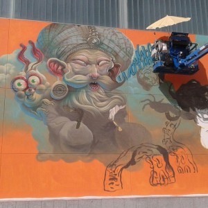 Saturno dou renda solta ao seu imaxinario no mural que executou no Fórum, cheo de personaxes propios dunha película de fantasía de finais dos 80 ou se cadra das portadas dos primeiros videoxogos daquela época, a cal invita ao espectador a viaxar a outros mundos e a deixar voar a imaxinación. Preséntanos unha escena onírica donde a técnica e o estilo é a mensaxe principal da obra, creando personaxes e escenarios con unha técnica depurada e impecable do aerosol, conseguindo unha definición nos acabados e unha saturación na cor que non deixa indiferente.