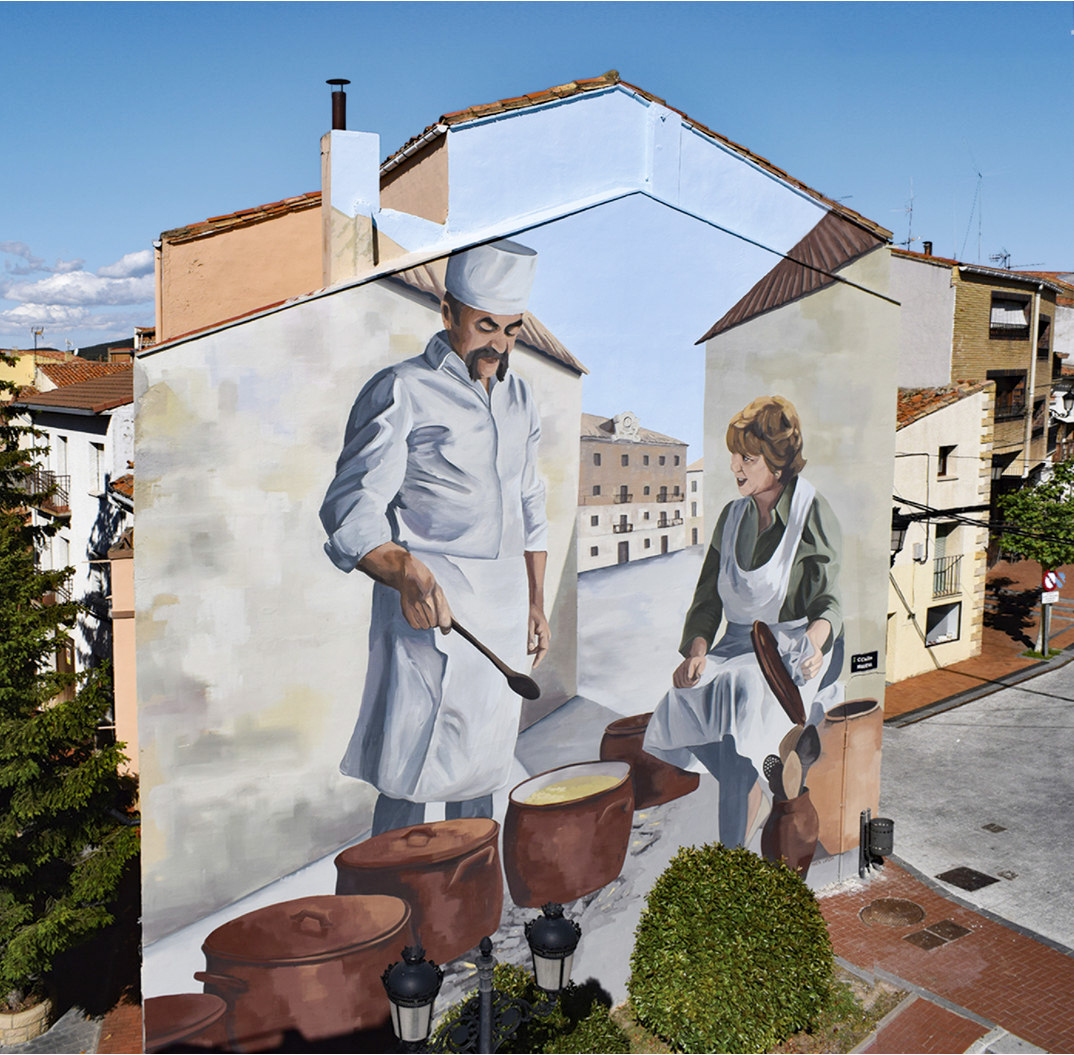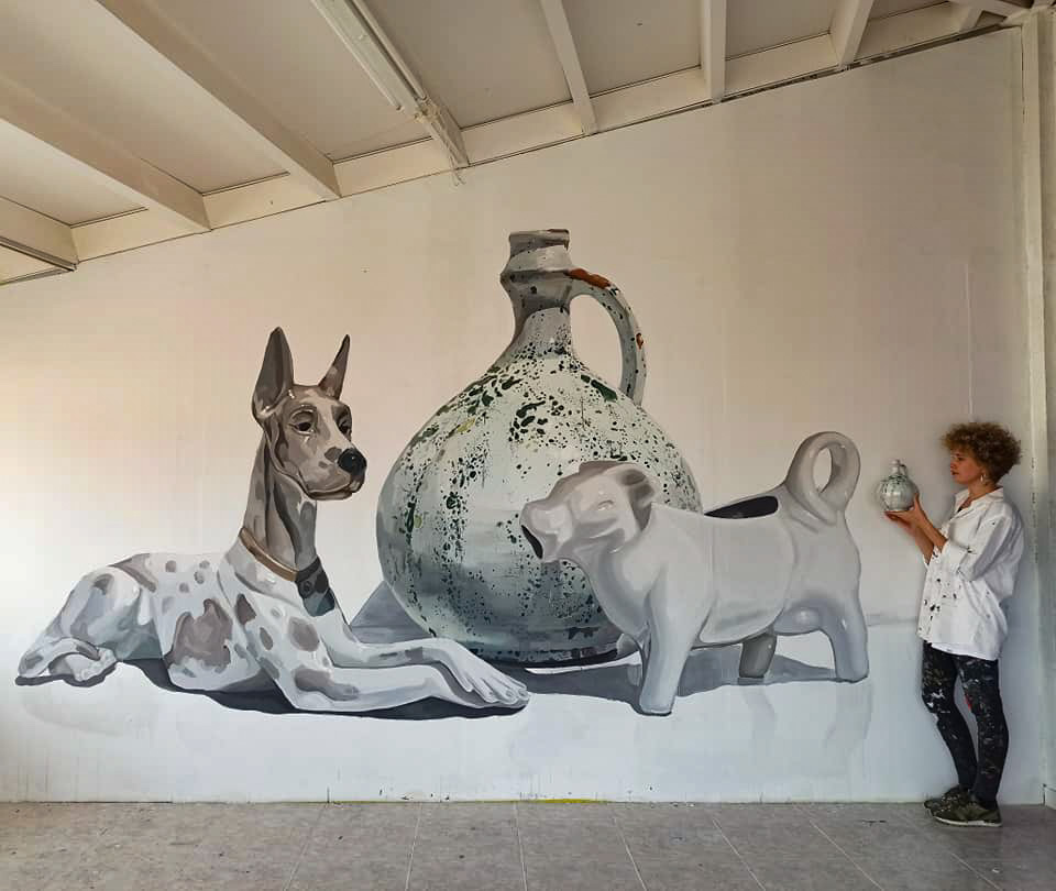 Esta artista segoviana, afincada en Madrid, sitúa su trabajo entre la pintura y el muralismo y sus obras están influenciadas por la vida cotidiana