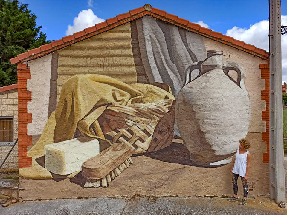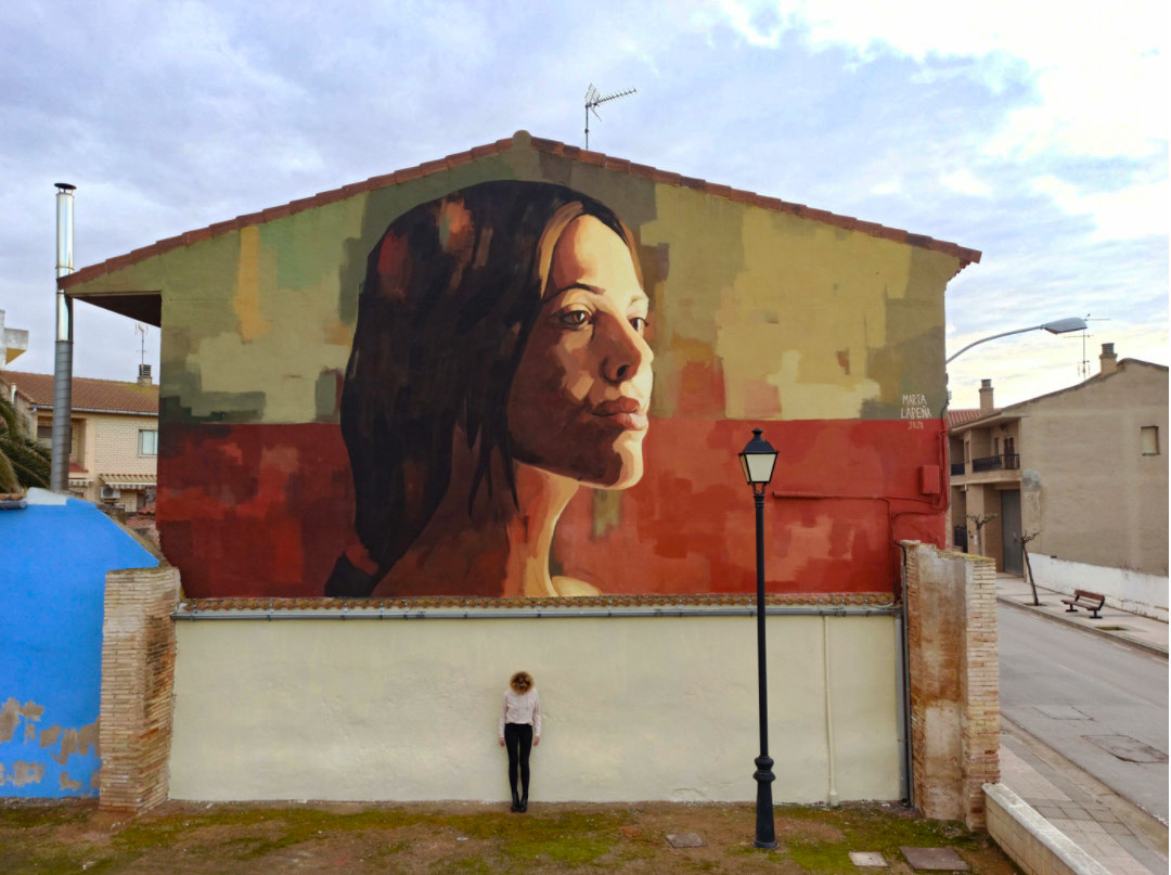 Marta Lapeña (Ólvega, Soria 1993) es el primero de los nombres de los que hablaremos como artista invitada del Rexenera Fest 2021 (que tendrá lugar del 3 al 13 de junio). Se trata de una artista plástica y muralista que actualmente vive y trabaja en Madrid. Licenciada en Diseño de Interiores por la Universidad Politécnica de Madrid, decidió dedicarse a la pintura y a la investigación y estudio de diferentes técnicas, centrándose posteriormente en la concepción y desarrollo de proyectos artísticos. Ha asistido a varios cursos y participa en experiencias relevantes que la han llevado a participar en diferentes galerías, ferias de arte, centros culturales y festivales de arte urbano como parte de su trayectoria profesional.