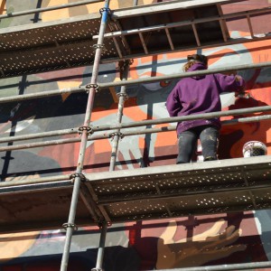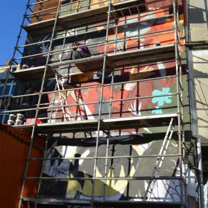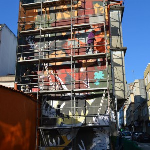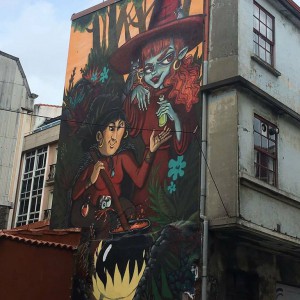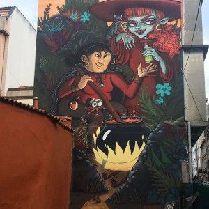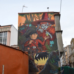 Nana (Diana Rodeiro) y Nada (Iria Fafián), componentes de 7H Cooperativa Cultural, son las autoras del mural A era das meigas, inspirado en la leyenda local del Monte Neme. Este, con una altitud de 385 metros, situado en la costa en los límites entre Carballo y Malpica de Bergantiños, además de su pasado como mina de wolframio, es conocido por su historia mítica. Cerca de la cumbre, se erguía un cromlech, del que ahora no queda nada, a no ser un círculo en el suelo en el que dicen las leyendas que la hierba no crece más. Es aquí donde la tradición oral sitúa los aquelarres que hacían las meigas (brujas) y el demonio en la noche de San Juan, sentados sobre enormes sillas de piedra, para discutir sobre las jugadas que les iban a hacer a los vivos.