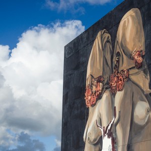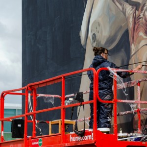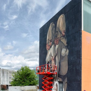 La artista argentina continúa con la serie de trabajos murales que estaba realizando en 2018 en los que juega con la idea del conjuro, representando a la mujer como bruja o curandera que encuentra soluciones a problemáticas contemporáneas. En este caso nos muestra a dos mujeres emprendiendo un nuevo hechizo.