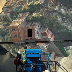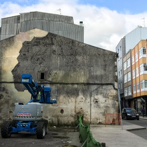 En esta ocasión Cinta nos ha dejado un mural diseñado ex profeso para Carballo y que lleva por título Costa da Morte, en el que se fusionó literalmente con esta pared y en el que retrata ciertos rasgos predominantes de la arquitectura propia de Carballo como las casas con galerías, casas con cubiertas de teja y los peculiares hórreos de la comarca, que hacen referencia directa a la algunas construcciones de la propia localidad. En consonancia con todo su trabajo anterior, utiliza la arquitectura como elemento narrativo crucial de la obra pero introduce elementos menos usados en su trayectoria como montañas y acantilados, que volteados y faltos de gravedad adquieren una expresividad y un vértigo especial.