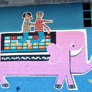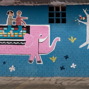 La obra de Mon Lendoiro esconde una historia que tiene que ver con la vida, con la inocencia y con el mundo infantil, pero también con la esperanza ante la diversidad. El protagonista es un elefante rosa, acompañado de un niño y una niña, de los animales que conviven con ellos en la selva y de un perro, el amigo fiel. En el mural se refleja un submundo increíble y original, propios de los niños, como señala el autor, quien se inspiró en un sueño que tuvo durante una estancia en el hospital.