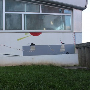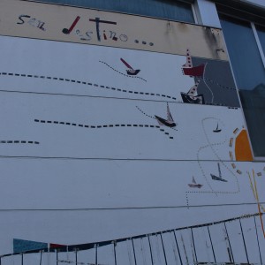 El mural pretende ser una mirada sobre el arenal de Baldaio, Caión a un lado, Malpica al otro, y los caminos que allá nos conducen… Una mirada aparte norte de la Costa da Morte, a los barcos que hasta no hace mucho poblaban esta parcela de Océano convulso y frondoso.