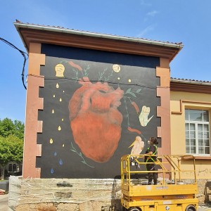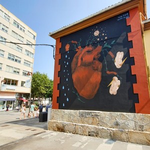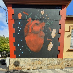 Nere Rama «Bailando na lúa» ha creado para la Ludoteca Municipal de Carballo el mural «A liberdade interior» («La libertad interior»). Trata de la libertad más pura que llevamos dentro, la misma que nos hace sentir, florecer, crecer y (re)vivir. La motivación principal que tuvo la artista para llevarlo a cabo fue todo el cariño que le desprende la ubicación y que siempre lleva en la memoria. Lugar muy frecuentado en la infancia y que guarda miles de momentos buenos. La infancia es lo que te marca de alguna manera para llegar a ser lo que se quiera ser con el paso de los años, y es lo más esencial para florecer y ser libre. Amar mucho y tener la suerte de ser criada o criado aprendiendo la importancia de ser libre y así poder florecer gracias a ese mismo hecho. Eso es lo principal que Nere Rama buscaba transmitir para ese lugar: calma, recuerdos, paso del tiempo y mucho amor.