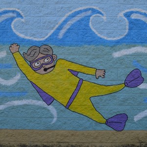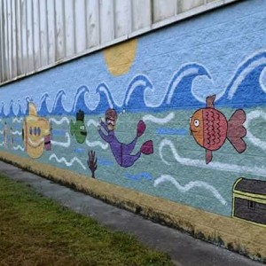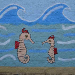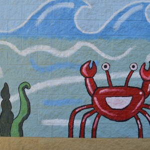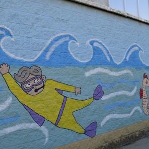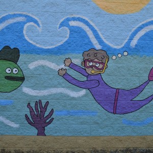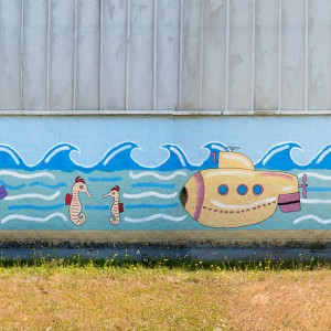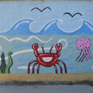 Esta intervención fue creada para el programa «Carballo, mirando ao mar», con el que se intentó asentar la idea de que Carballo tiene costa. El muro de formato horizontal y alargado, representa una escena en el fondo del mar con una estética pensada para lo fácil entendimiento de los niños y niñas del colegio. De este modo, la artista empleó formas simples y colores planos y vivos para plasmar diferentes pescados, caballitos de mar, medusas, buceadores y un gran submarino en la parte central que nos hace mirar bajo el mar.
