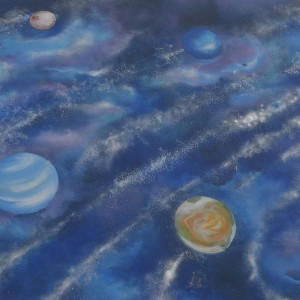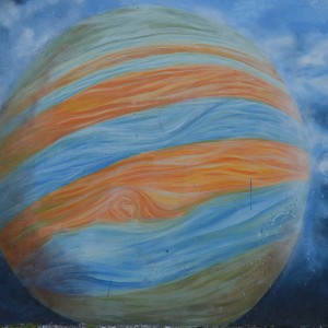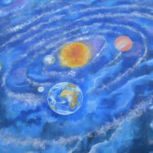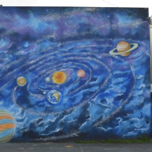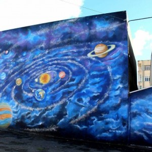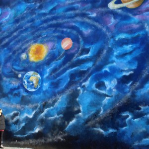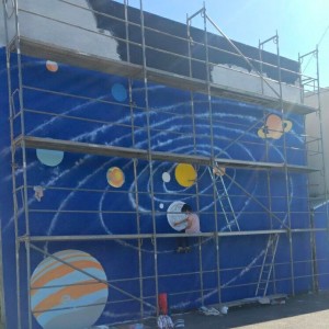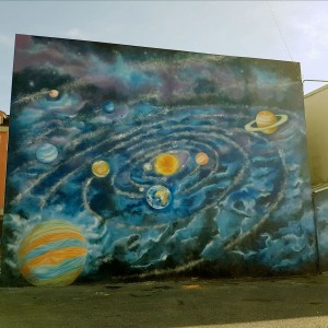 El tema de este primero mural es el Sistema solar, a lo que le seguirán otras intervenciones sobre la evolución humana o el medio ambiente.
