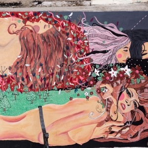 Obra conjunta de las artistas locales, Alita y Laura Tova, situada en la calle Molino en la que realizan una interpretación de la obra del pintor sezesionista austríaco Gustav Klimt, Serpientes de agua II (1904-1907). Siguiendo la Klimt, la composición se organiza en horizontal, en una superficie donde se alargan los cuerpos desnudos de modernas sirenas. Son cuatro lánguidas figuras de mujer que, en el caso de esta representación, se mezclan entre un paisaje nocturno, la diferencia del oleo dónde se entrelazan con los líos de algas, confundidas con los largos cabellos. Así, la versión de este mural es la visión naturalista de las autoras quien llenan la superficie de elementos orgánicos, frente el estilo más simbolista del artista austríaco, asociado a un carácter sensual y erótico, una constante en todas sus pinturas.