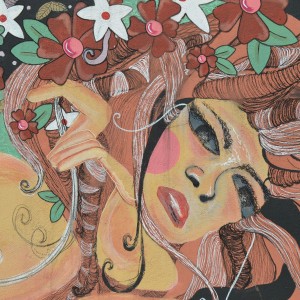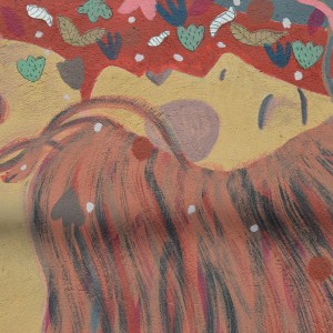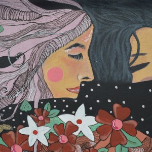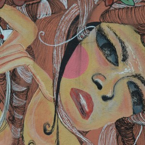 La figura superior de la izquierda aparece dormida de espaldas al espectador, mientras que los dos rostros de su lado, parece que se acercan en un íntimo rumor. Destaca el personaje del primer plano quien establece contacto con el exterior con su mirada, retirando su cabello del rostro con la mano. Esta idea de conexión de la obra con el espectador es reforzada con la ambientación de «sala de estar» que realizaron las artistas en la pared contigua, que tiene pintada una lámpara, y en el suelo, en el que simularon una alfombra, aprovechando la presencia ya de mobiliario urbano, un par de bancos. Así, quisieron sacar fuera la obra de arte a la calle, dando acceso al viandante a su observación e invitándolo a su contemplación y disfrute.