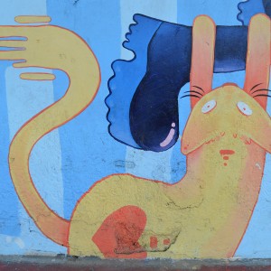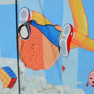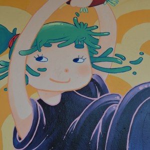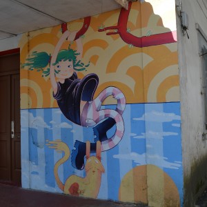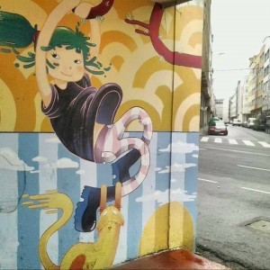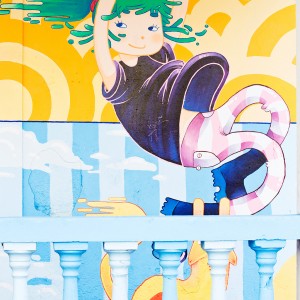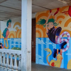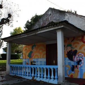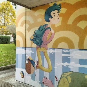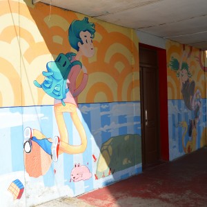 La artista local Lidia Cambón, con la ayuda de Andrés Andrade, fue la encargada de darle colorido a la antigua escuela de Arrabales ubicada en el parque del barrio de la Milagrosa. La obra ocupa la totalidad de la fachada del pequeño edificio, y en ella se representa una escena protagonizada por niños con motivos de inspiración infantil: dibujo de líneas redondeadas y lleno de colores, tanto de la gama fría cómo cálida. El mural nos recuerda a la antigua función que desempeñaba el edificio.