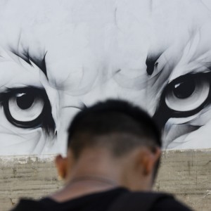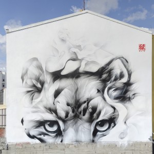SATR representa en este mural la mirada de un felino majestuoso que acecha y que parece que está a punto de saltar, con una apariencia de gran fuerza y simbolismo.