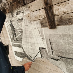 Una tira de imágenes en formato Polaroid que retratan flashes de la calle del propio muro, y que establecen un curioso juego con el viandante. Como en una busca de un tesoro, San invita al transeúnte a sumergirse en las pistas que deja en esas 5 estampas y descubrir dónde se encuentra cada una de ellas para poner el foco en el que ya nadie repara…
