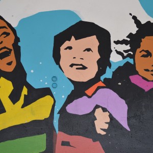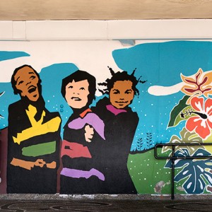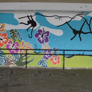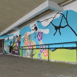 Este mural fue realizado por Emi de las Heras con chicos y chicas del Campamento de Verano del Balonmano Xiria, en los meses de julio del 2014 y 2015.