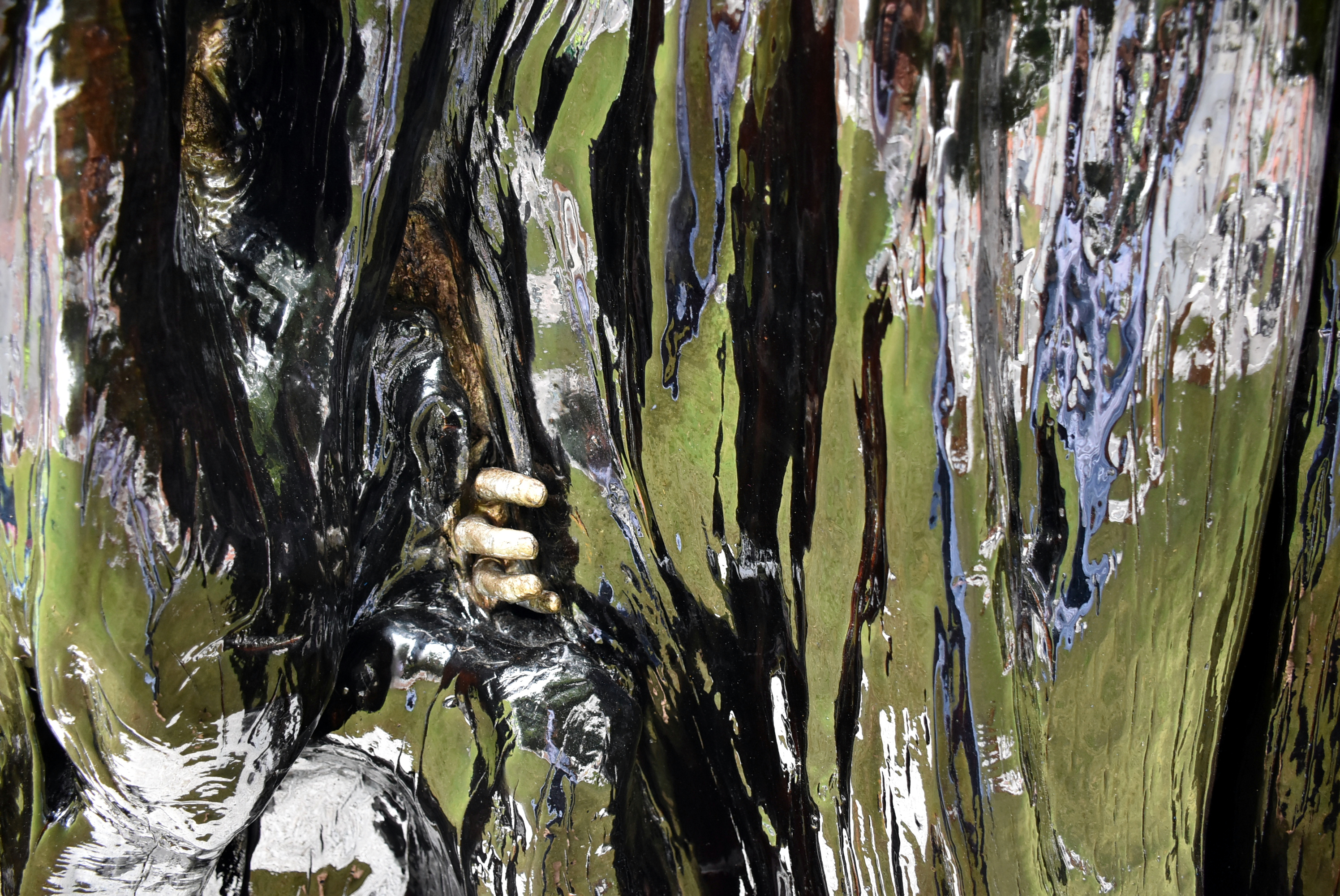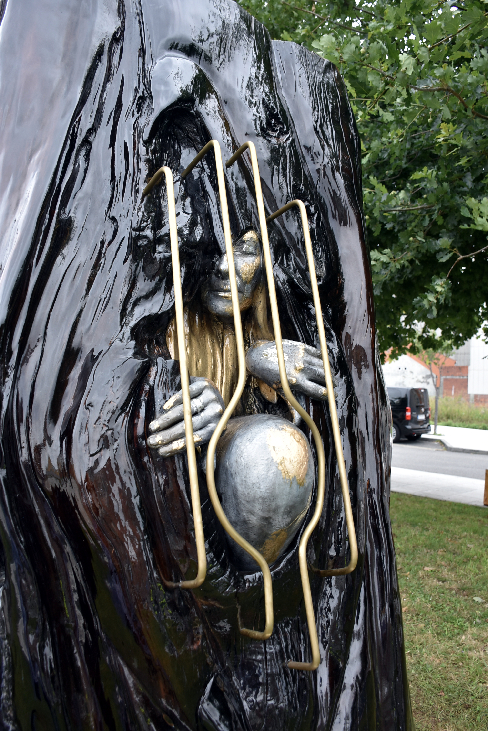 La pieza escultórica, de gran tamaño, ofrece un variado espectro cromático en el que la luz juega un papel fundamental, tanto para potenciar la intensidad de los colores como para percibir ese cúmulo de sensaciones que pretende transmitir, ya que según su posición y dirección ofrece un tornasol lleno de reflejos brillantes que pasan de uno negro azabache a un caoba con destellos dorados. Así, la falta de luz la vuelve de un negro intenso mientras que con luz directa adquiere transparencia, descubriéndonos reflejos dorados de la madera.