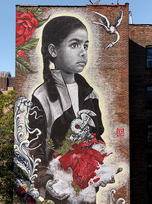 La artista gallega Lula Goce, que creó un espectacular mural en Carballo durante el Rexenera Fest 2018, acaba de pintar un mural en Nueva York con la imagen de la conocida actriz española