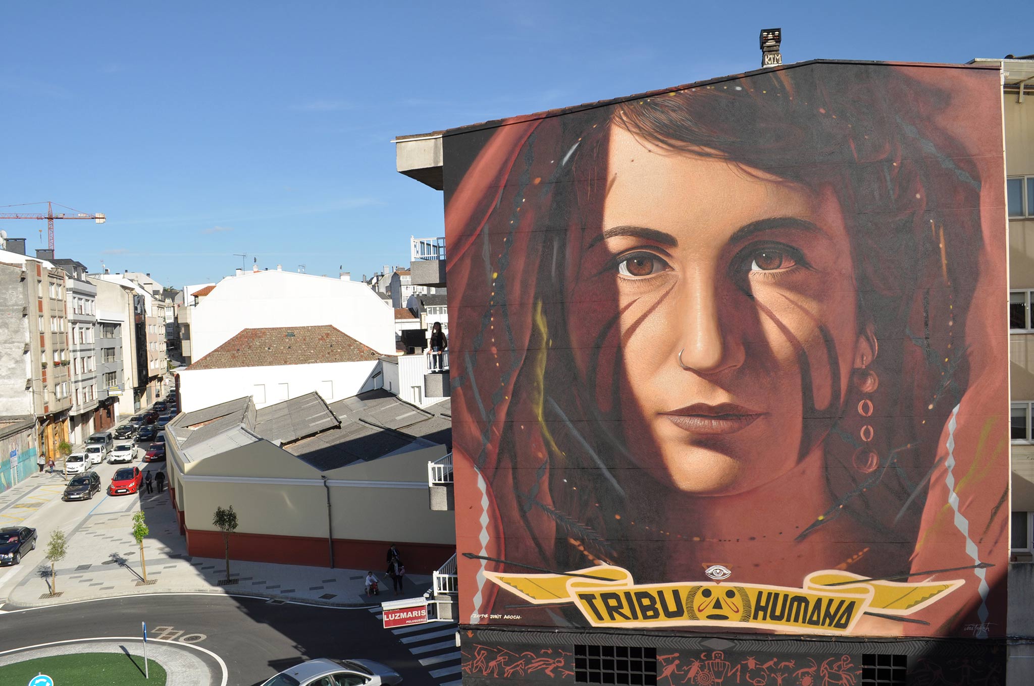 Tramo 4. Volvemos a la calle Luis Calvo y a la derecha en la calle Ponte vemos a la ninfa Ofelia, de Nana. Nos giramos para subir hasta la calle Poñente para ver la Tribu Humana de Jorit. Seguimos subiendo y a lo lejos ya vemos el último mural del camino, pero antes tenemos una sorpresa en la Avenida da Cristina, donde está semi escondida la Petra Mater del argentino Bosoletti. Y la ruta termina en el principio con A orixe 2 («El origen») de MOU en la esquina entre la Avenida de las Flores y la calle Fábrica. Un mural que el autor realizó en dos ocasiones, porque el primero desapareció al derribarse el edificio en el que estaba.